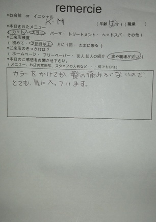 月に一回のカラーをかけているのですが痛みがないので気に入ってます